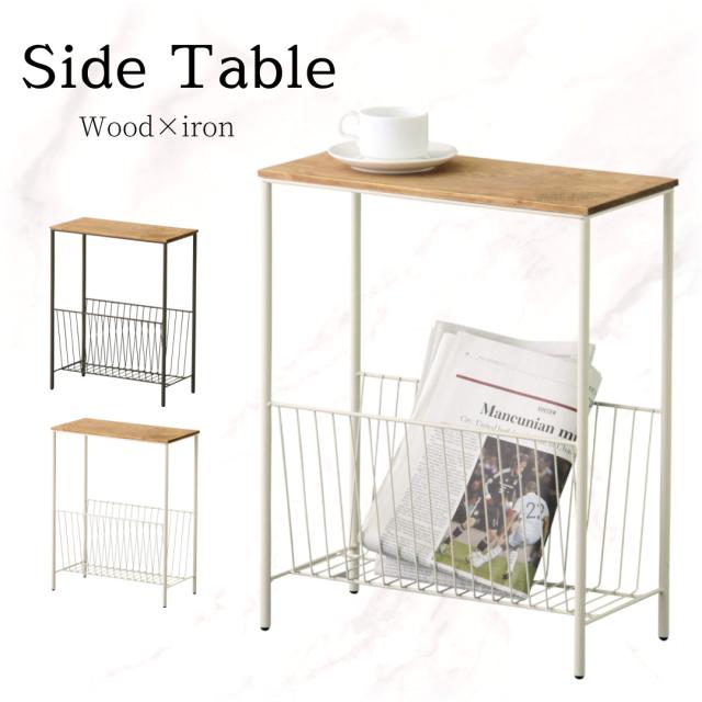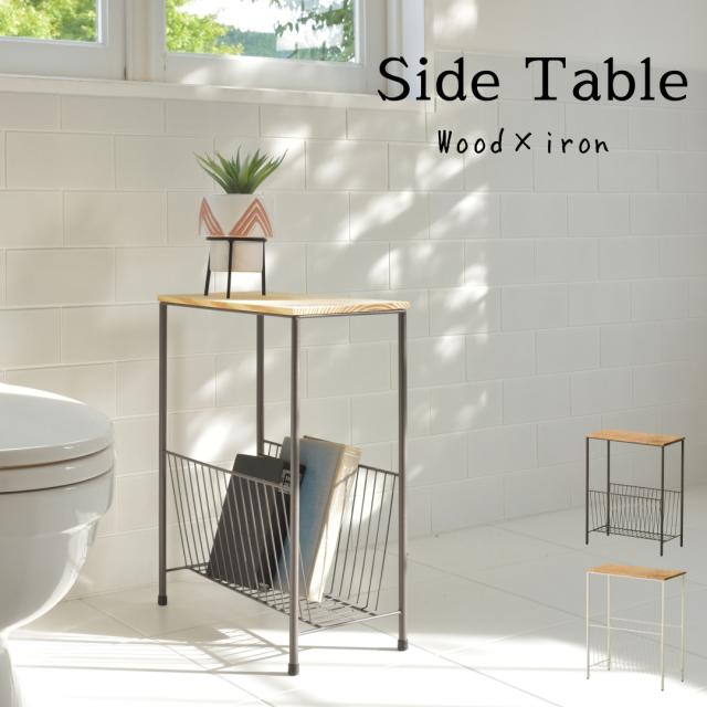 サイドテーブル 天然木 アイアンフレーム パイン材 コンパクト シンプル ソファ横 ソファーサイド ベッドサイド テーブル 机 ラック ミニラック 収納 アンティーク 北欧 おしゃれ デザイン家具 ブラウン アイボリー リビング 一人暮らし 新生活