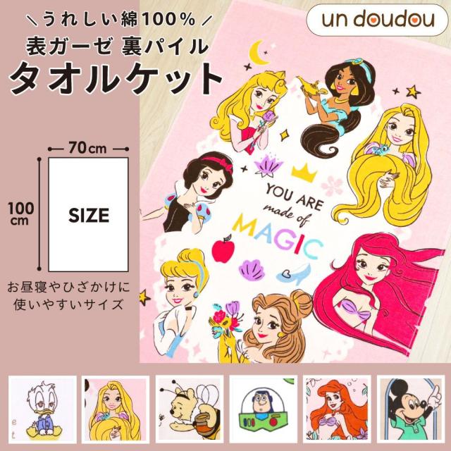 ディズニー タオルケット 70×100cm 綿100% 表ガーゼ プリンセス ガーゼタオルケット ベビー用品 新品 キッズ お昼寝ケット 保育園 入園 アリエル ラプンツェル シンデレラ ピンク un doudou メール便発送(ポスト投函) NP