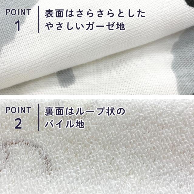 表面はふんわり軽いガーゼ生地、裏面はパイルでふんわりした手触りの良いタオル生地です。