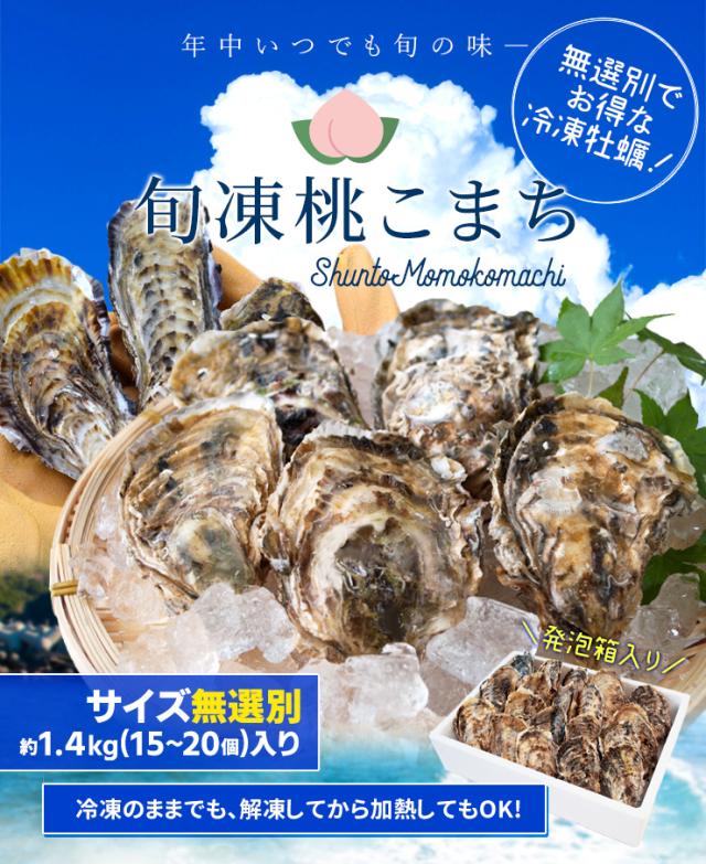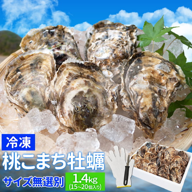 牡蠣 サイズ無選別 1.4kg(15〜20個入り) 冷凍牡蠣 送料無料 桃こまち 鳥羽産(発泡箱入・牡蠣ナイフ・片手用軍手付き)殻付き牡蠣 海鮮バーベキューセット 旬凍桃こまち