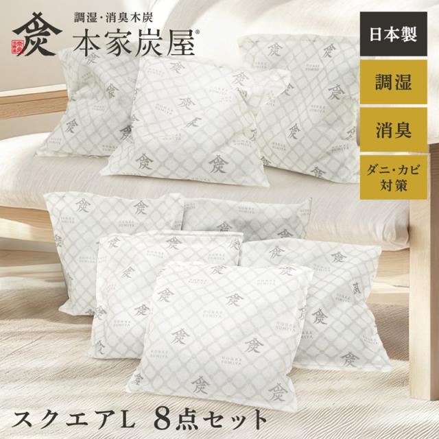 除湿剤 乾燥剤 湿気取り 除湿 繰り返し 湿気とり 大容量 半永久 炭 繰り返し使える除湿剤 リビング 寝室 玄関 調湿 消臭 木炭 本家炭屋 スクエアタイプL×8個