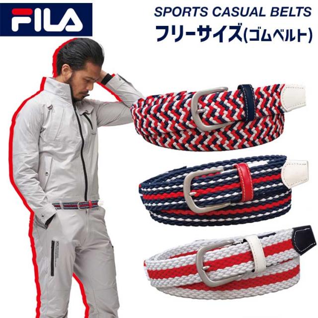 FILA フィラ メッシュ ベルト 軽量 伸びる ゴムベルト レディース メンズ ゴルフ スポーツ プレゼント フリーサイズ ネイビー ホワイト レッド 5FM031 503140