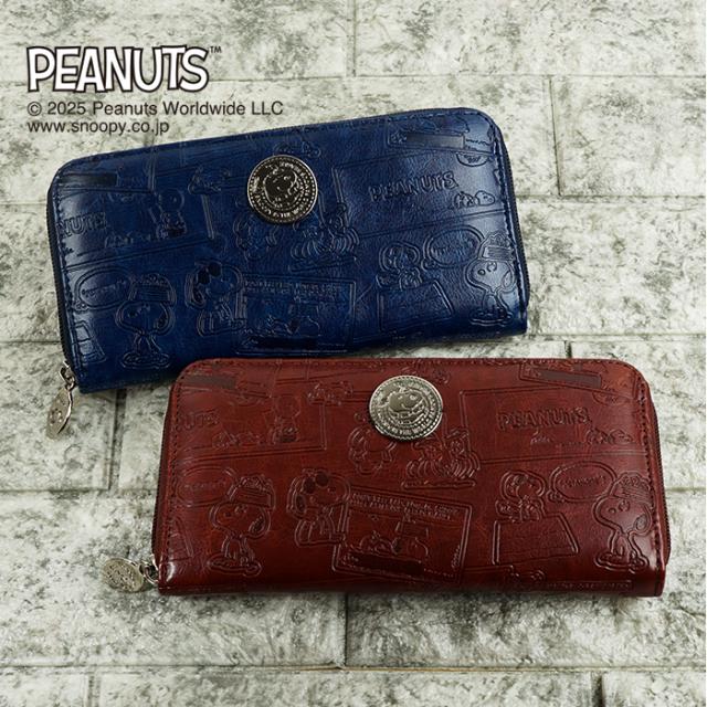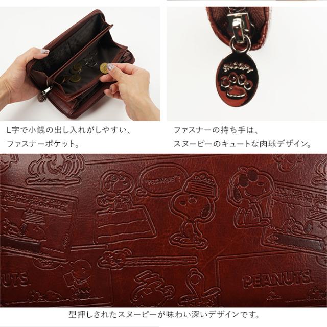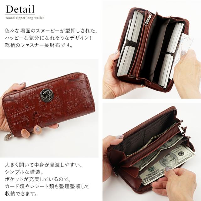 SNOOPY スヌーピー 財布 長財布 ラウンドファスナー 総柄 型押し 大人 シンプル おしゃれ かわいい PEANUTS サイフ レディース プレゼント ギフト ラッピング