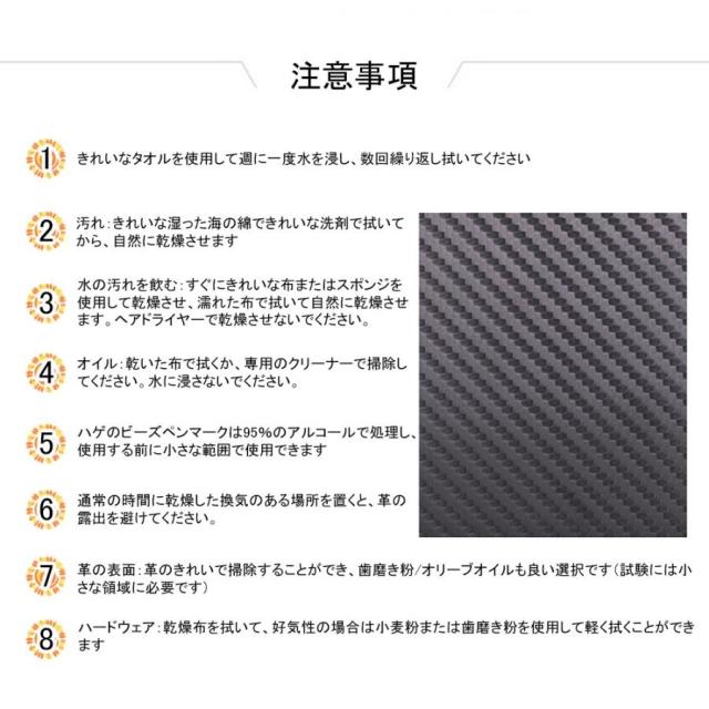 【 魅せるウォレット / 高性能レザー】革表面の格子状の美しいカーボンパターンは、手に持つあなたの姿を凛々しく見せます。意外と見られているあなたの財布。じつは財布は意外と周りから見られているものです。もともとイタリア発祥のカーボンレザーは車のシートやステアリング用に開発されたので汗や水分・汚れ・摩擦に強いのが特徴です。 しっとりやわらかで手になじむ独特の触感です。