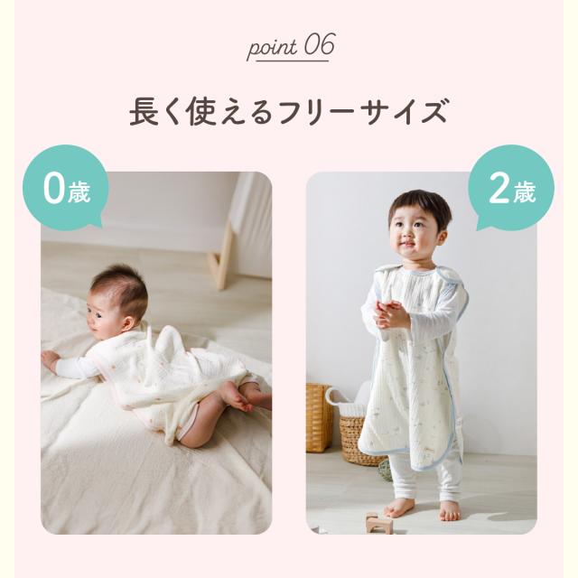 ・足が隠れていても着用できますが、転倒の恐れがあるため、つかまり立ちをするお子様には就寝時のみの使用をおすすめします。