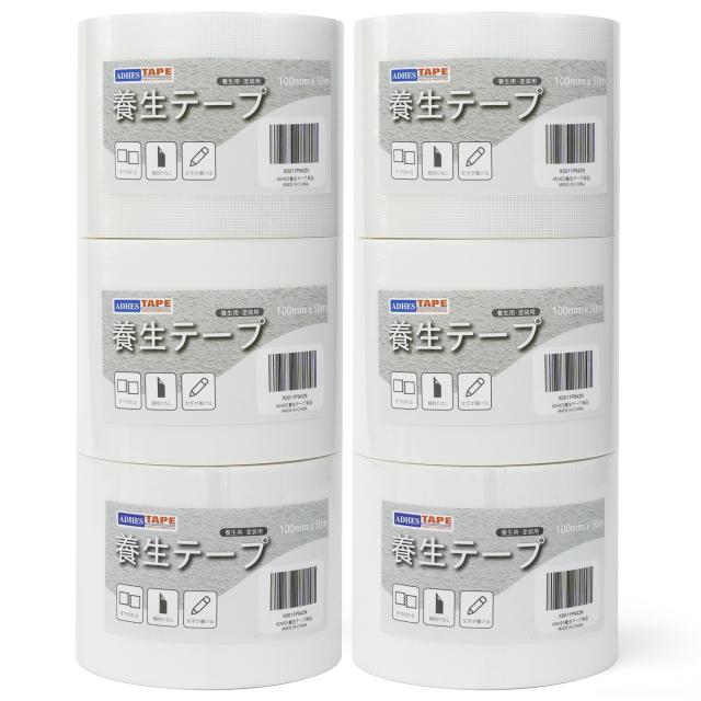 ADHES 養生テープ ガムテープ布 はがせる 窓ガラス 仮固定用 YC16 低粘着力 100mm ? 50m 6ロール