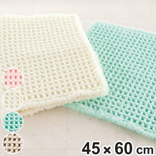 バスマット フレキシブルバスマット 45×60cm ( お風呂マット 足拭きマット 吸水 速乾 すべり止め ワッフル 洗える シャリ感 浴室マット バス マット 45×60 滑り止め 丸洗い ベージュ グリーン アイボリー ピンク )