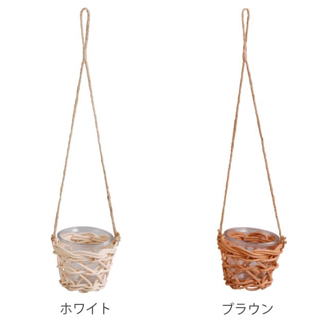 花瓶 ラタン ガラスハンギング S ( かご カゴ 天然素材 ガラス ハンギングポット ハンギング 吊り下げ 植木鉢カバー 植木鉢 カバー 観葉植物 鉢植え 室内 ハンギングバスケット ハンギングプランター ラタンバスケット つりさげ )