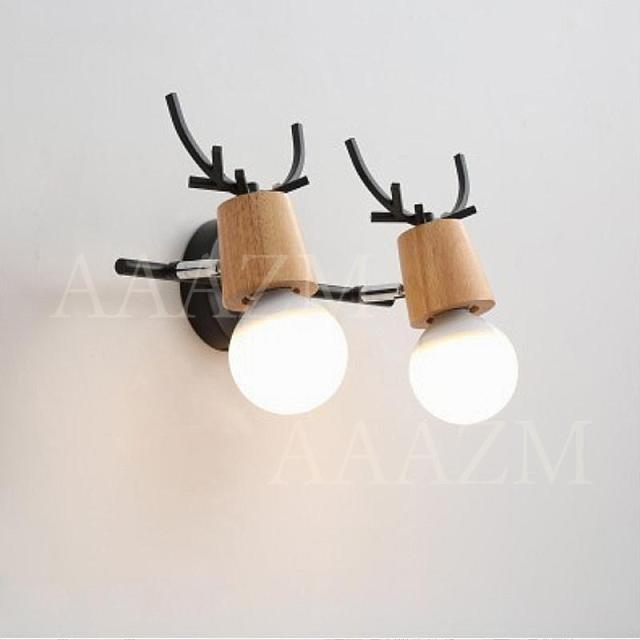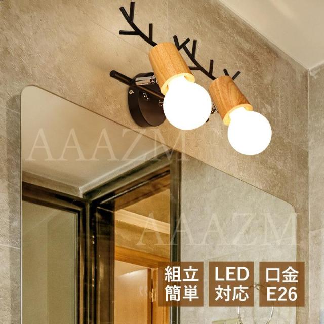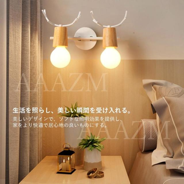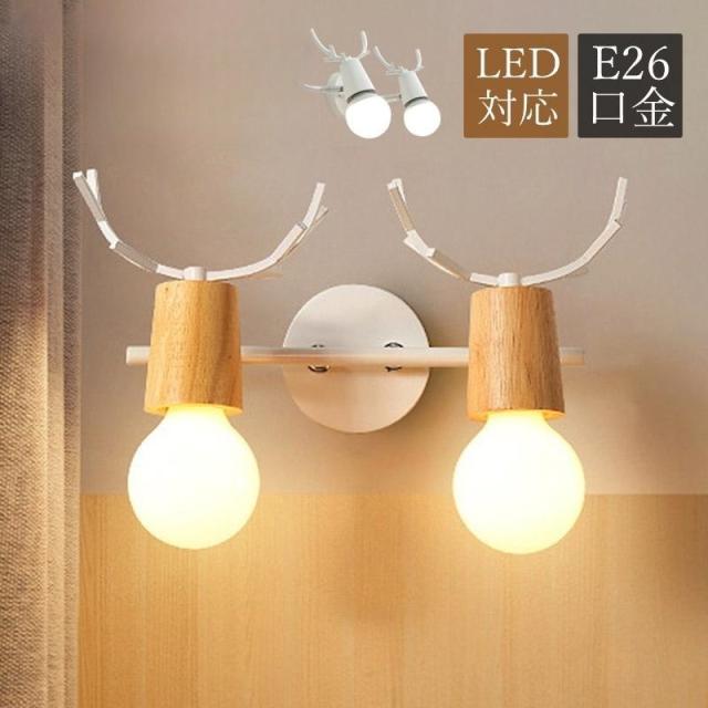 ブラケットライト 北欧 おしゃれ 鹿角型 LED電球対応 和風 木目 壁掛けライト 照明器具 階段 玄関 洗面所 壁付けライト 寝室 洋室 和室 2灯 ベッドサイドランプ