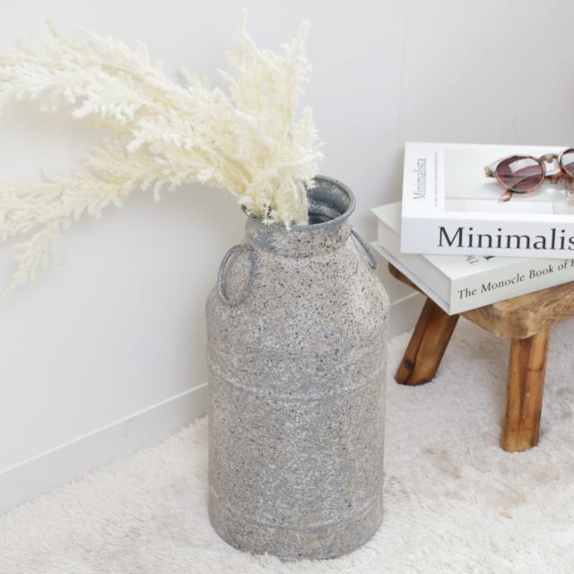 空間の印象をグッと引き上げてくれる丁度良い大きさのミルクカンなので、造花や大き目のスワッグを飾ったり、ポスター等の長さのある物を入れて、見せる収納としてもおすすめです。置くだけで一気にお部屋がセンスアップします。