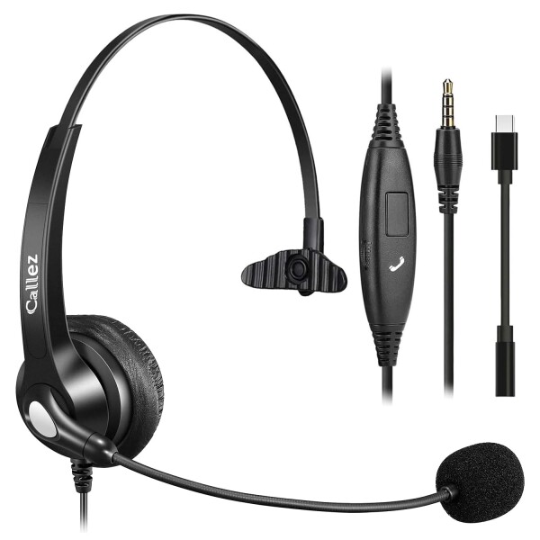 Callez 3.5mm携帯電話用ヘッドセット ノイズキャンセリングマイク付きPC用ヘッドホン iPhone、PC、スマートフォン、iPad、ラップトップに対応 Web会議、Skype、業務用、在宅勤務、オンライン授