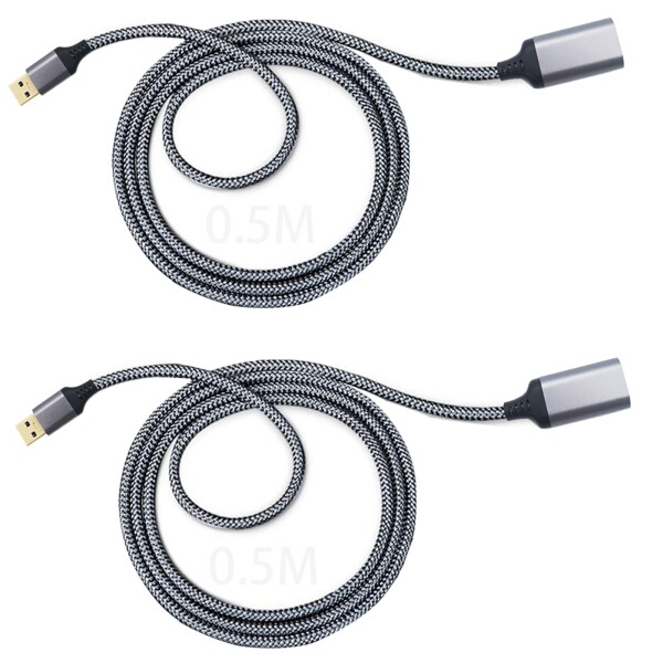 USB 3.0 延長ケーブル、CESFONJER 0.5 M 2本セット USBオス-メス延長ケーコードル データ高速転送5Gbps スキャナー、カメラ、USBディスク、キーボードに対応(グレー)