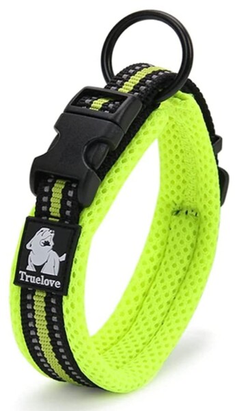 3M反射ステッチで夜道の散歩も安心、機能面でもおすすめです。柔軟性、耐久性、軽くて弾力性に優れたナイロン素材の犬用首輪、裏地に換気口がある。