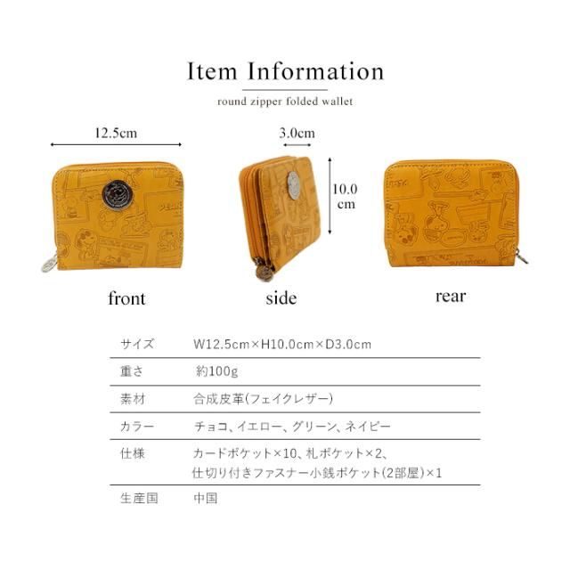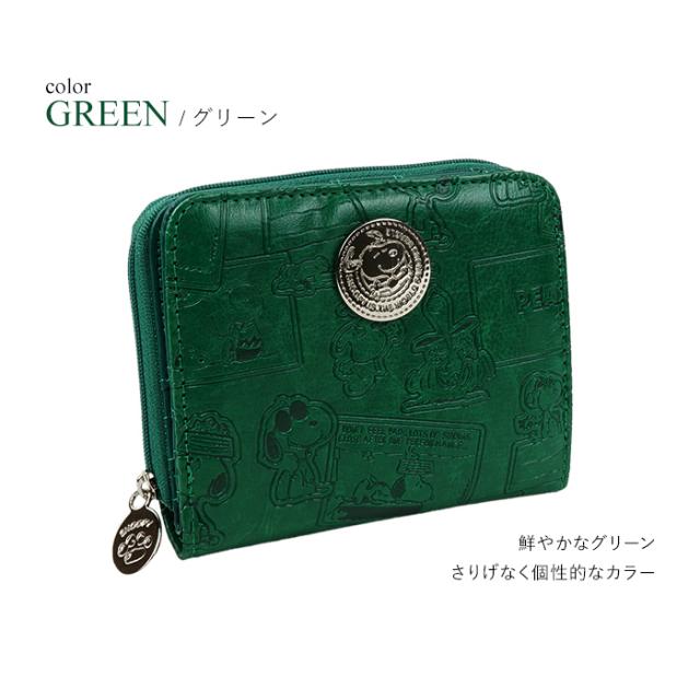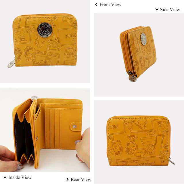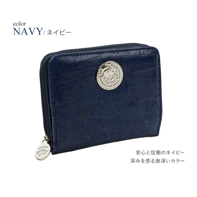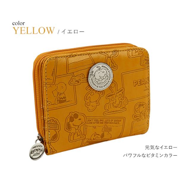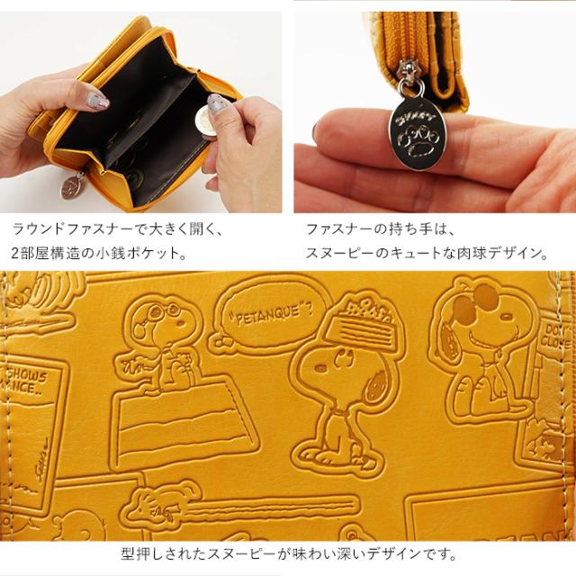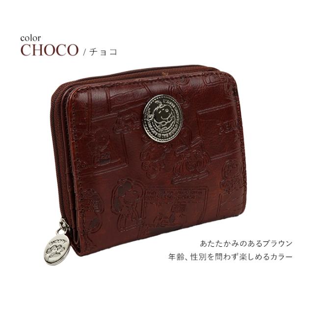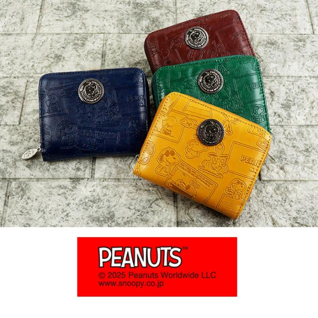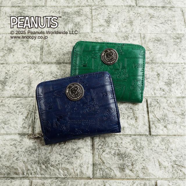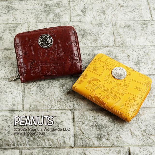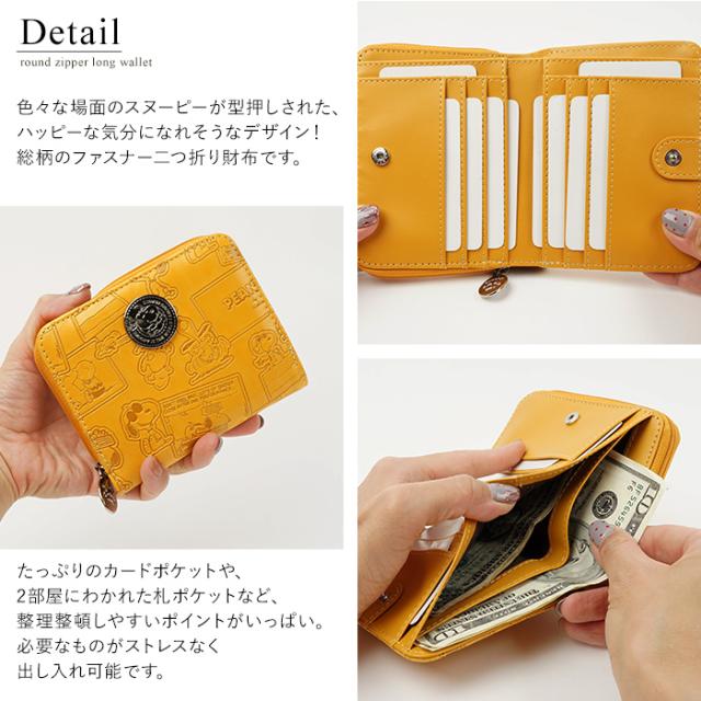 SNOOPY スヌーピー 財布 二つ折り財布 コンパクト財布 ファスナー 総柄 型押し 大人 シンプル おしゃれ かわいい PEANUTS サイフ レディース プレゼント ギフト ラッピング
