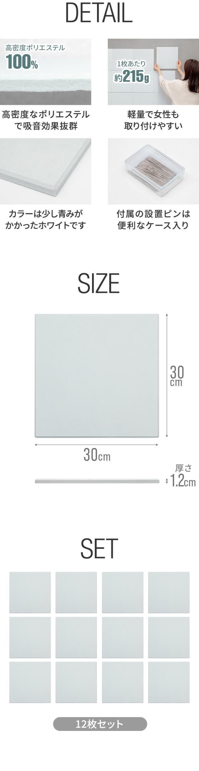 吸音パネル 吸音材 30×30cm 12枚セット ウォールパネル 防音パネル 防音 スクエア 賃貸 おしゃれ 白 DIY 簡単 貼るだけ 模様替え 壁材 騒音 対策 遮音 インテリア 内装 シンプル ナチュラル 吸音ボード 防音ボード 壁 タイル 1年保証 送料無料