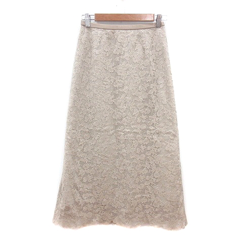 【中古】ルクールブラン le.coeur blanc フレアスカート ロング レース 38 M ベージュ /MN レディース