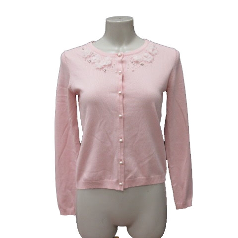 【中古】アベニールエトワール カーディガン ニット ラインストーン 花モチーフ 長袖 36 ピンク レディース
