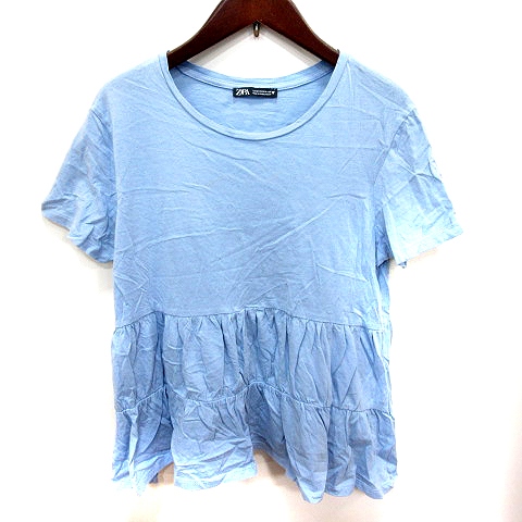 【中古】ザラ ZARA カットソー Uネック 半袖 M ライトブルー /RT レディース