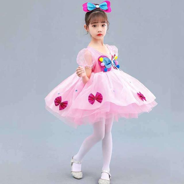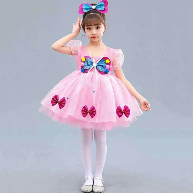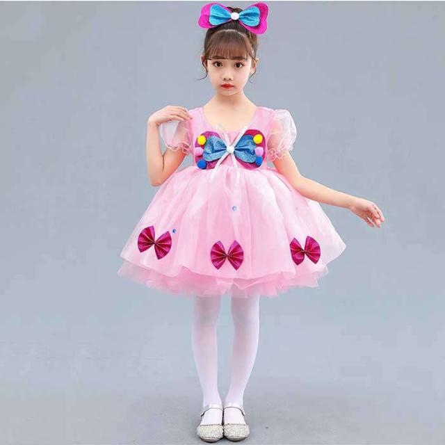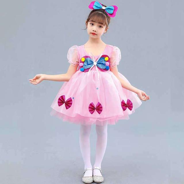 商品名:ダンス服 女の子 ワンピース ダンスウェア 子どもドレス ダンス練習着 演出服 ダンス服 キッズダンス衣装 バレエダンス レッスン着 発表会 プリンセス 髪飾り付き ストッキング リボン 子供服 可愛い イベント衣装 舞台衣装 踊り ダンス大会 コスプレ 仮装 姫 ファッション 100 110 120 130 140