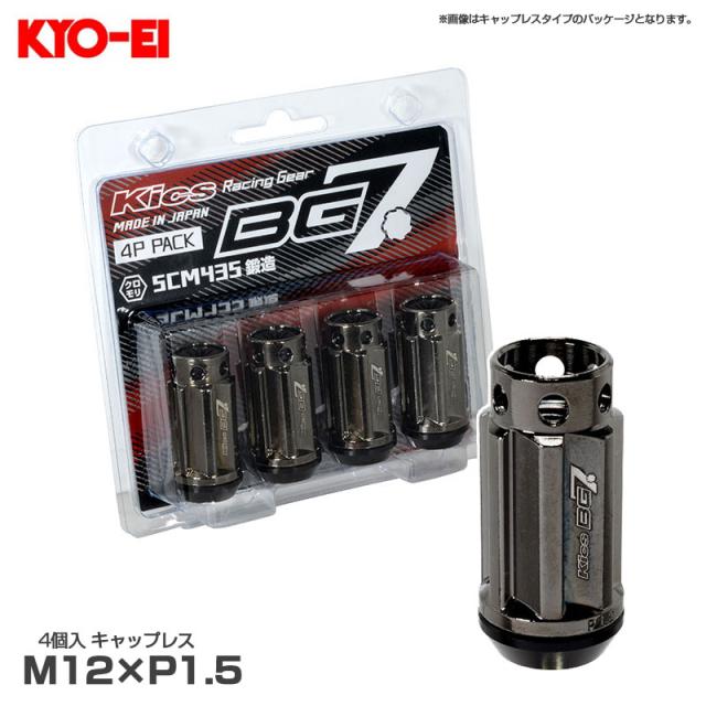 Kics BG7ナット 4個入 キャップレス 貫通 M12×P1.5 21HEX グロリアスブラック SCM435 クロモリ鋼構造 KYO-EI BG701K4P