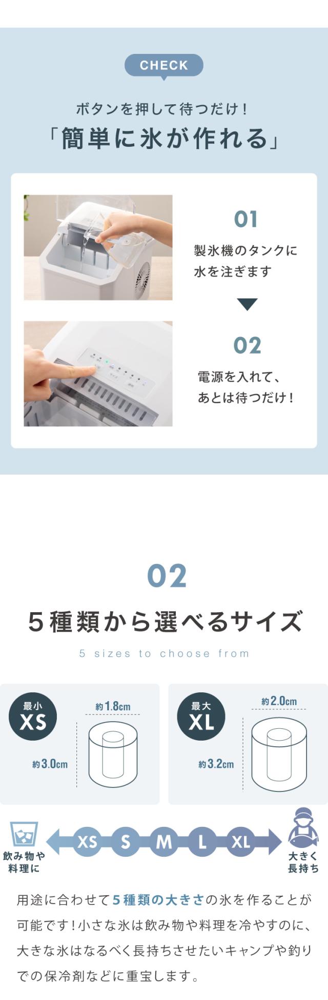 ・選べる氷サイズ:XS・S・M・L・XL