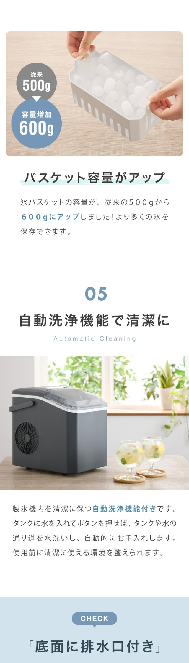 氷バスケットの容量が500gから600gに増加し、より多くの氷を保存できます。