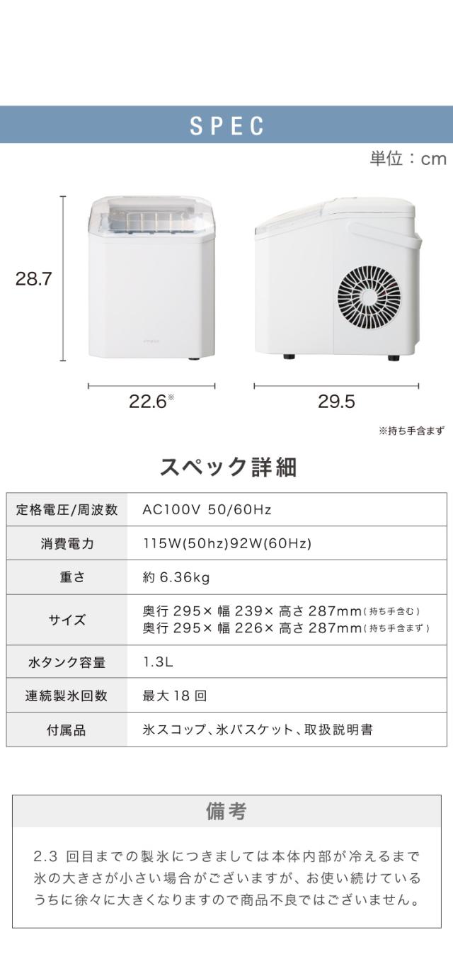 付属品:氷スコップ、氷バスケット、取扱説明書