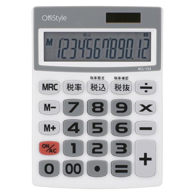 税率電卓 大画面 12桁 (品番)07-8639 KCL-154 [オフィス機器:電卓 オーム電機]