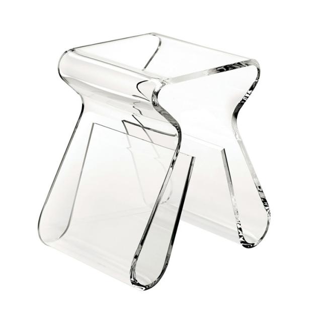 アクリル製の洗練されたデザインとマガジンラック機能が特徴のスツール。