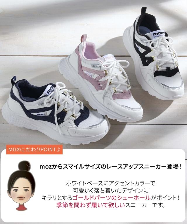 大きいサイズ レディース ゆったり幅広 moz モズ 軽量モチーフ 付 レース アップ スニーカー ワイズ4E 春 夏 秋 冬 靴 23.0〜23.5/24.0〜24.5cm ニッセン nissen