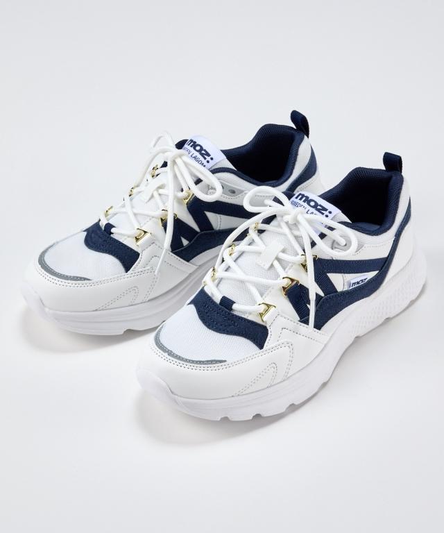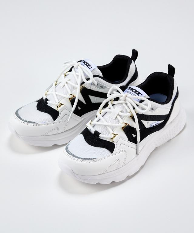 【ゆったり幅広】moz(モズ)軽量モチーフ付レースアップスニーカー(ワイズ4E)