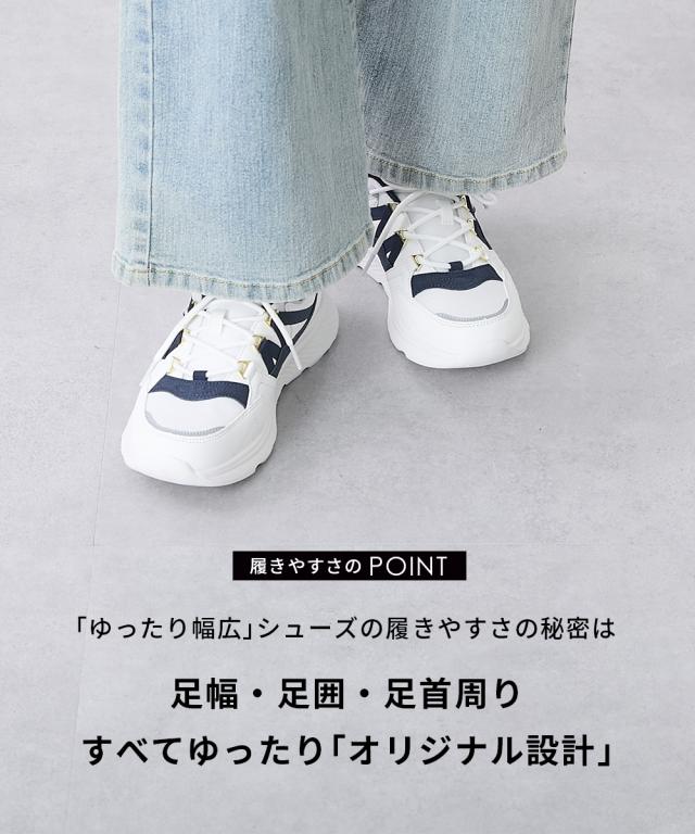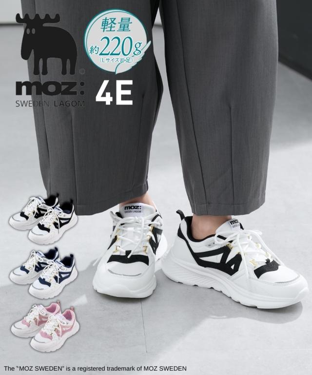大きいサイズ レディース ゆったり幅広 moz モズ 軽量モチーフ 付 レース アップ スニーカー ワイズ4E 春 夏 秋 冬 靴 シューズ 25.0〜25.5cm ニッセン nissen