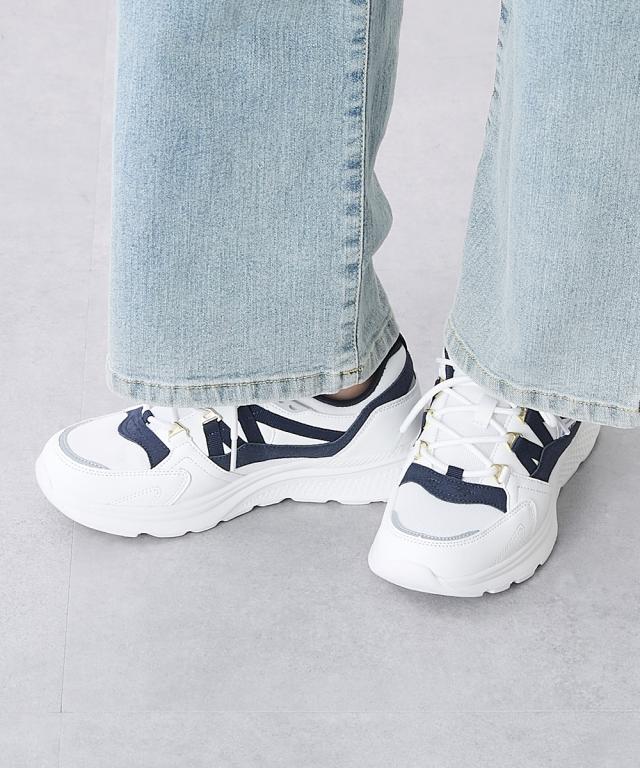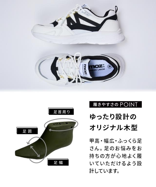 【ゆったり幅広】moz(モズ)軽量モチーフ付レースアップスニーカー(ワイズ4E)