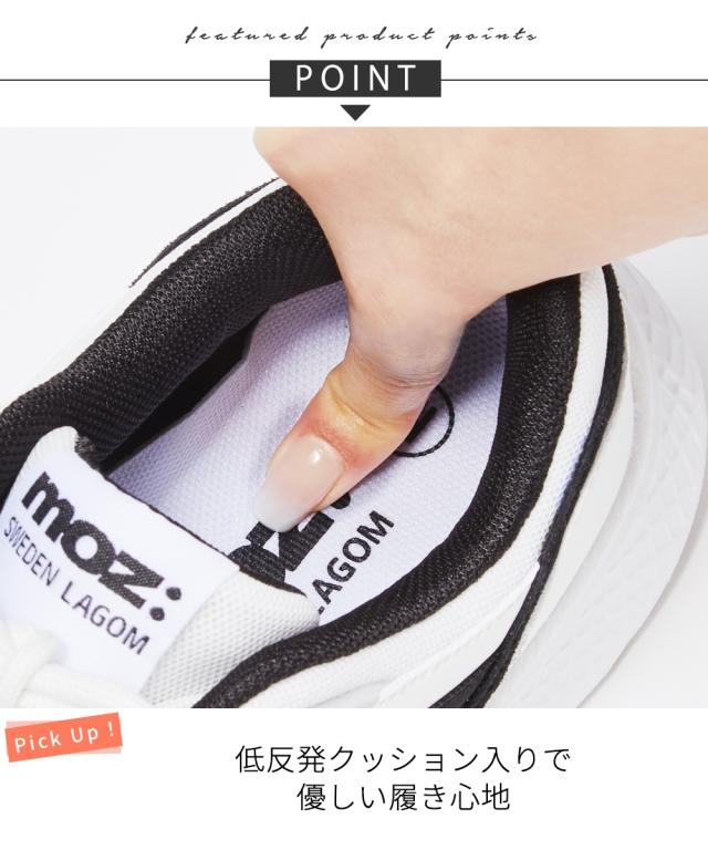 【大人気北欧ブランドmoz】moz(モズ)からスマイルサイズのレースアップスニーカー。女性らしいカラーリングながら金具の留め具でキラッと大人らしいデザイン。季節を問わず履いて欲しいスニーカーです。 ■ポイント ・屈曲性が良いと、踏み込んだ足の動きに馴染み、自然な足の動きになるので、長時間のおでかけも疲れにくくて快適に ・ふかふかのクッション中敷きが足への衝撃を慧眼 ・シューホール部分の金具がアクセント ・シーズン問わず履きやすいデザイン 【ニッセンオリジナルの大きいサイズ規格】 本当に合う靴に出会った事はありますか ニッセンの4Eは、靴底の幅を広げ、甲や足首周りもゆったりの独自設計。 靴のサイズにお悩みのお客様へ向けて、サイズが大きくてもバランス良くきれいに見えるよう企画したオリジナルシューズです。