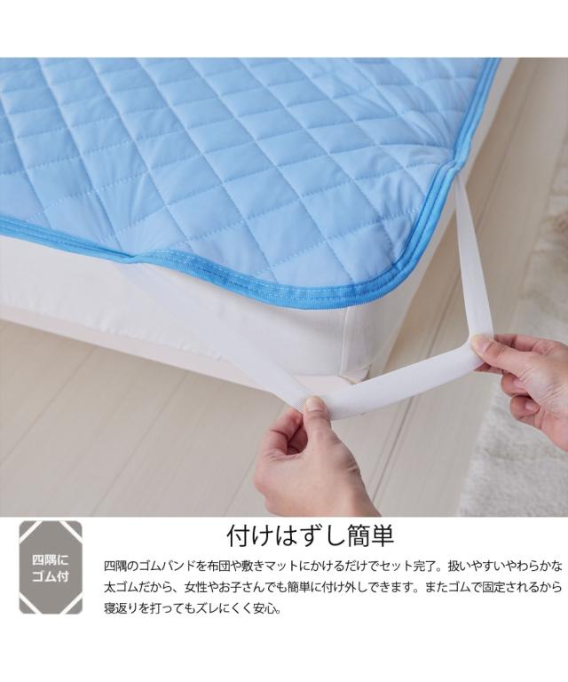 ●品質:表側=ポリエステル100%、裏側=ポリエステル100%、詰め物=ポリエステル100%●4隅ゴム付 ※冷感は使用中の状況により感じ方が変わります。また触れたままの状態で冷感が持続するものではありません。 原産国:中国製 備考:洗濯機OK ネット使用