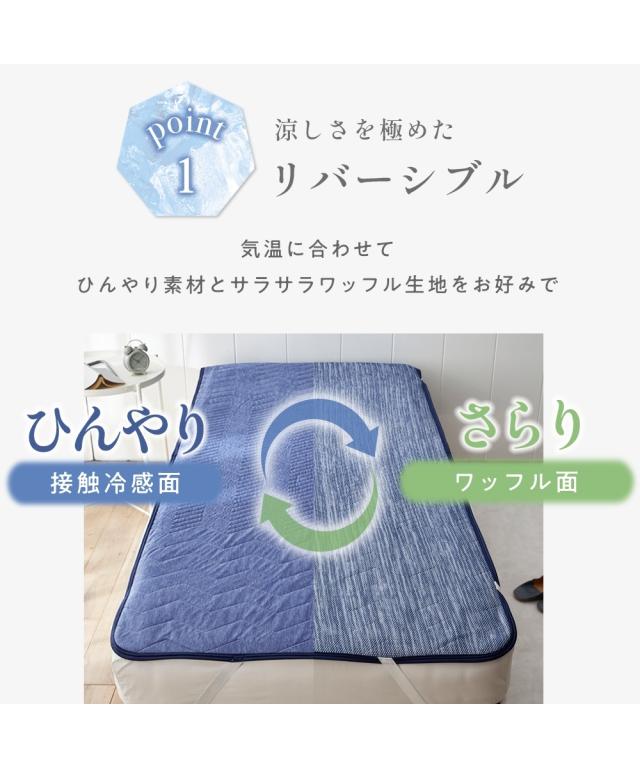超冷感×吸汗速乾ワッフル防ダニシート入り高通気リバーシブル敷きパッド
