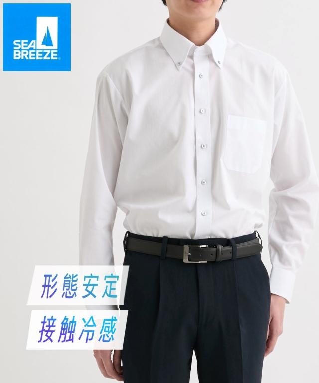 ワイシャツ メンズ ボタンダウン 長袖 有 形態安定 接触冷感 シーブリーズ 夏 カッターシャツ ドレスシャツ M/L/LL ニッセン nissen