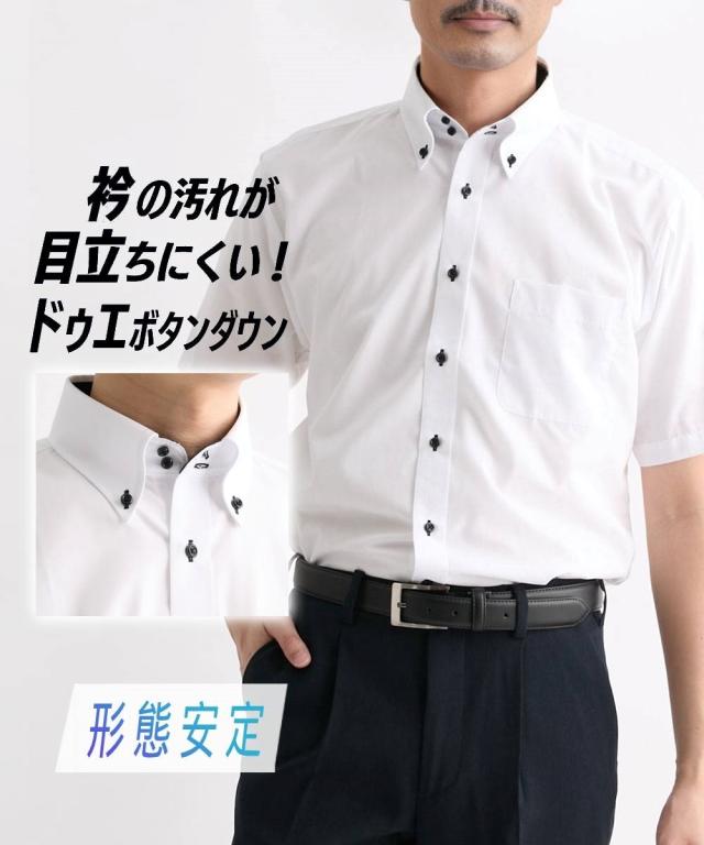ワイシャツ メンズ 汚れが目立ちにくい衿裏配色 形態安定ドゥエボットーニボタンダウン 半袖 夏 ビッグ ラージ カッターシャツ 3L/4L/5L/6L/8L ニッセン nissen