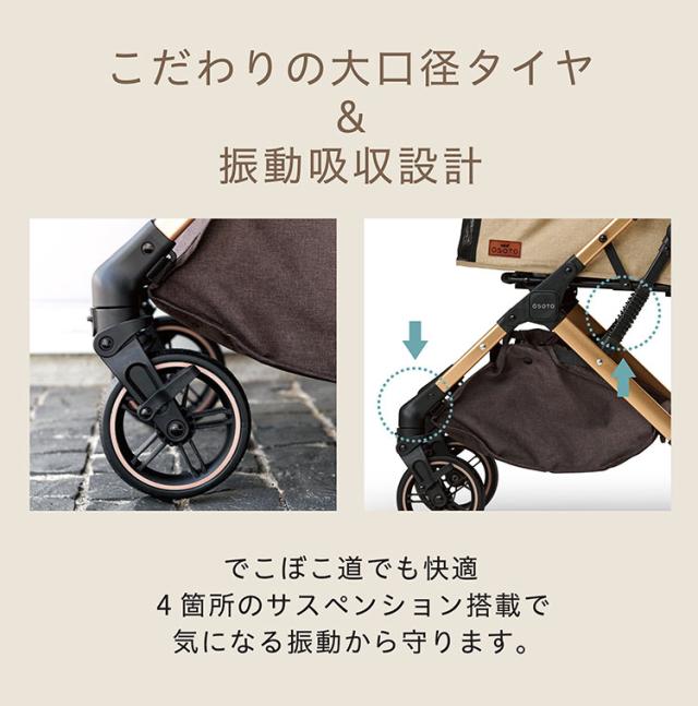 大口径タイヤででこぼこ道でも快適な乗り心地&押し心地。