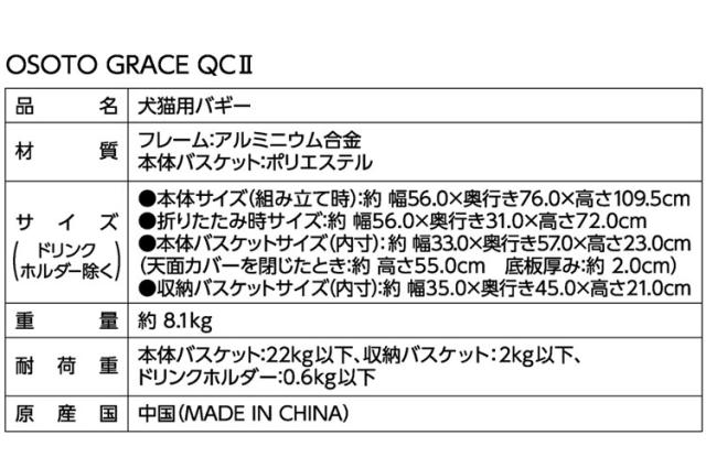 ジェックス OSOTO GRACE QC ペットカート カート キャリー リバーシブルハンドル 折りたたみ コンパクト バギー ハウス オソト グレース 通院 お出かけ お散歩 旅行 犬用 小型犬 猫用 多頭 GEX【送