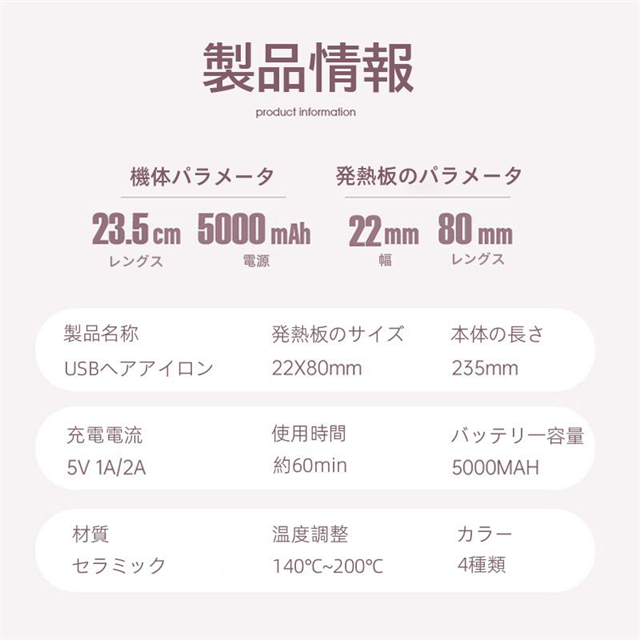 ヘアアイロン コードレス ミニ カール アイロン ストレートアイロン USB充電 前髪 4段温度調節 急速加熱 携帯 旅行用 おすすめ