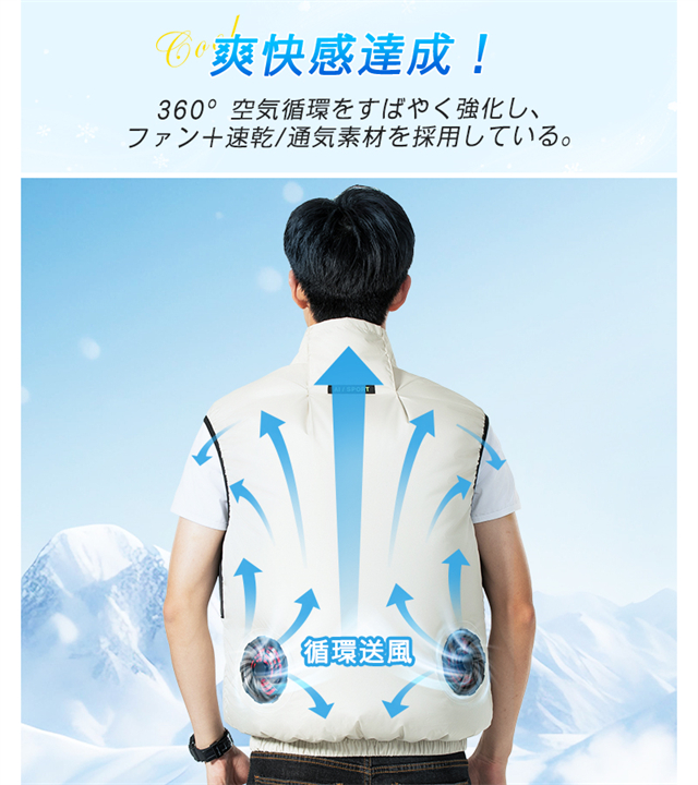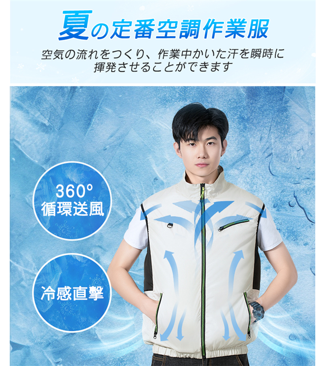 空調ベスト 空調ウェア 空調作業服 20000mAhバッテリー 男女兼用 3段階強風 22h連続送風 空調 作業 服 モバイルバッテリー付き ファンベスト 空調扇風服 エアコン服