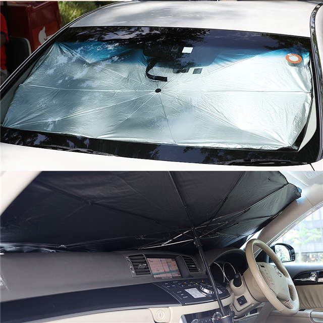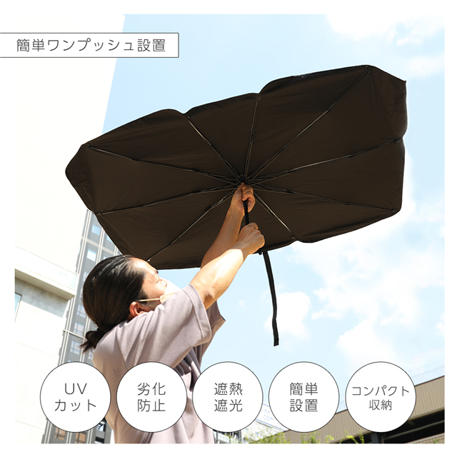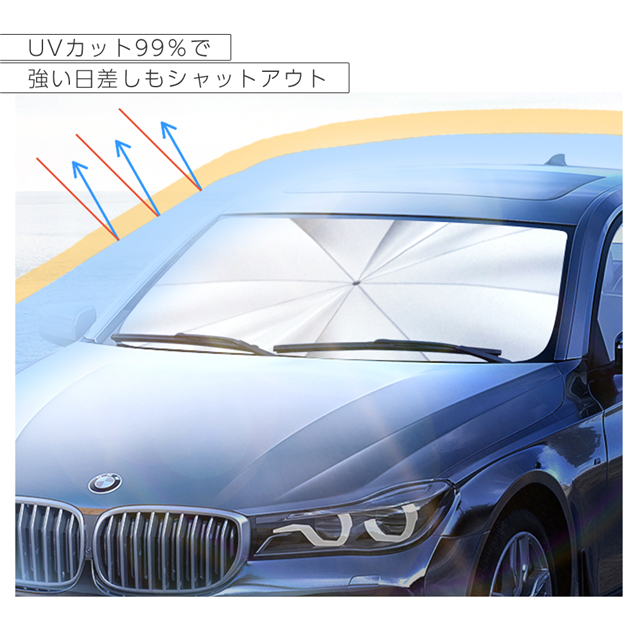 サンシェード 車用 傘型 軽自動車 フロント サンシェード ベランダ 車 カー用品 かわいい 日よけ 折りたたみ傘 紫外線対策 10本骨 遮光 断熱 簡単操作 収納ポーチ付き 折り畳み式 フロントカバー 車保護 夏