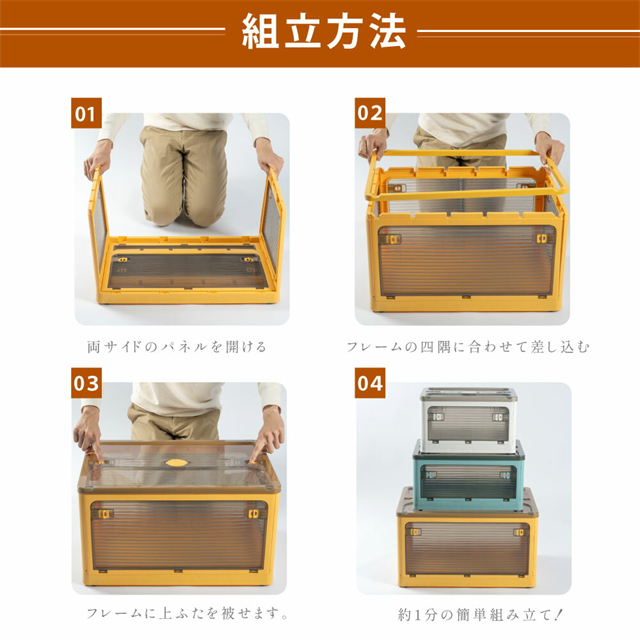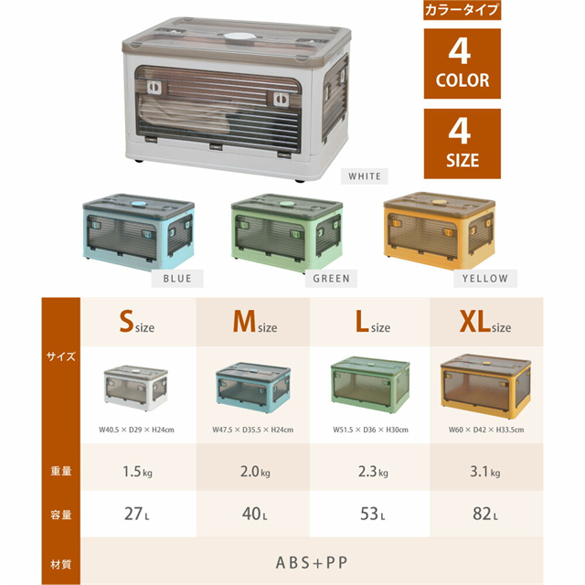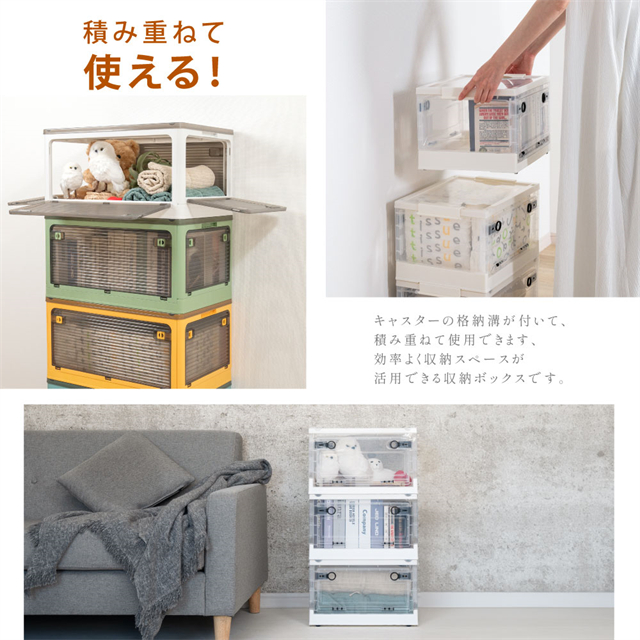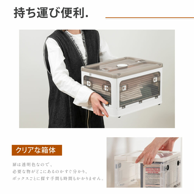 収納ボックス 折りたたみ コンテナボックス キャスター付き 耐荷重 53L/82L 5面開き 組立簡単 扉付き フタ付き 4カラー 移動便利 収納ケース コンパクト 大型 衣類