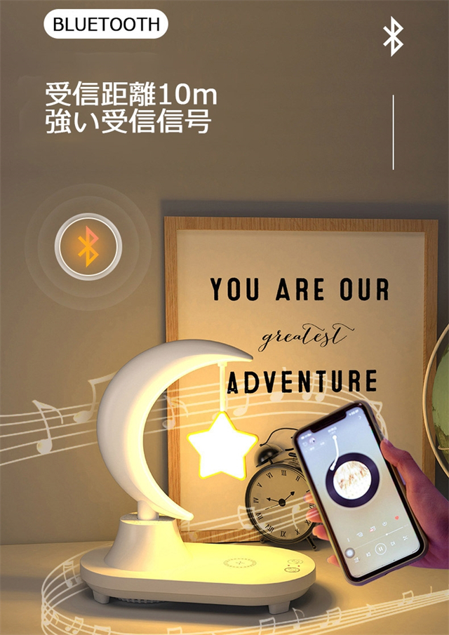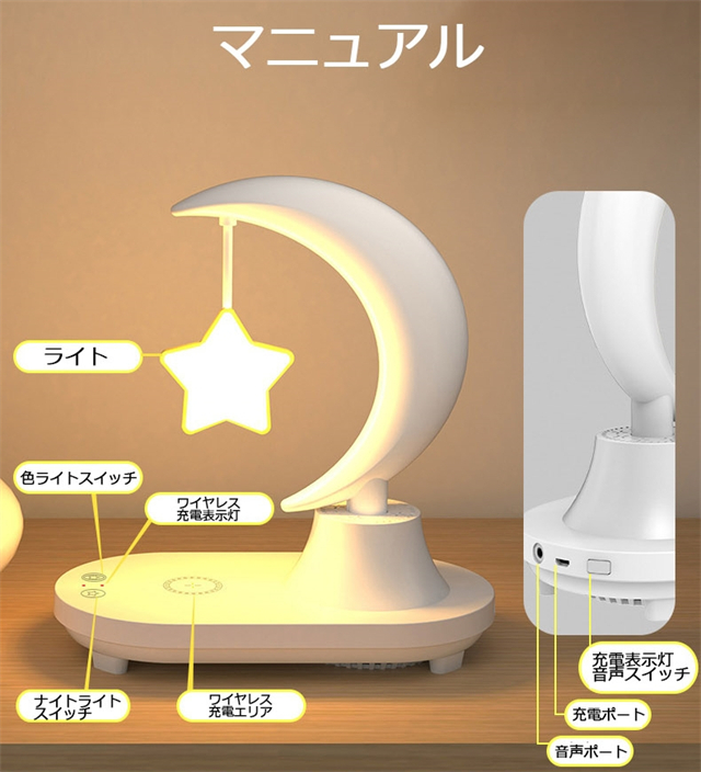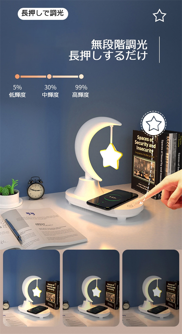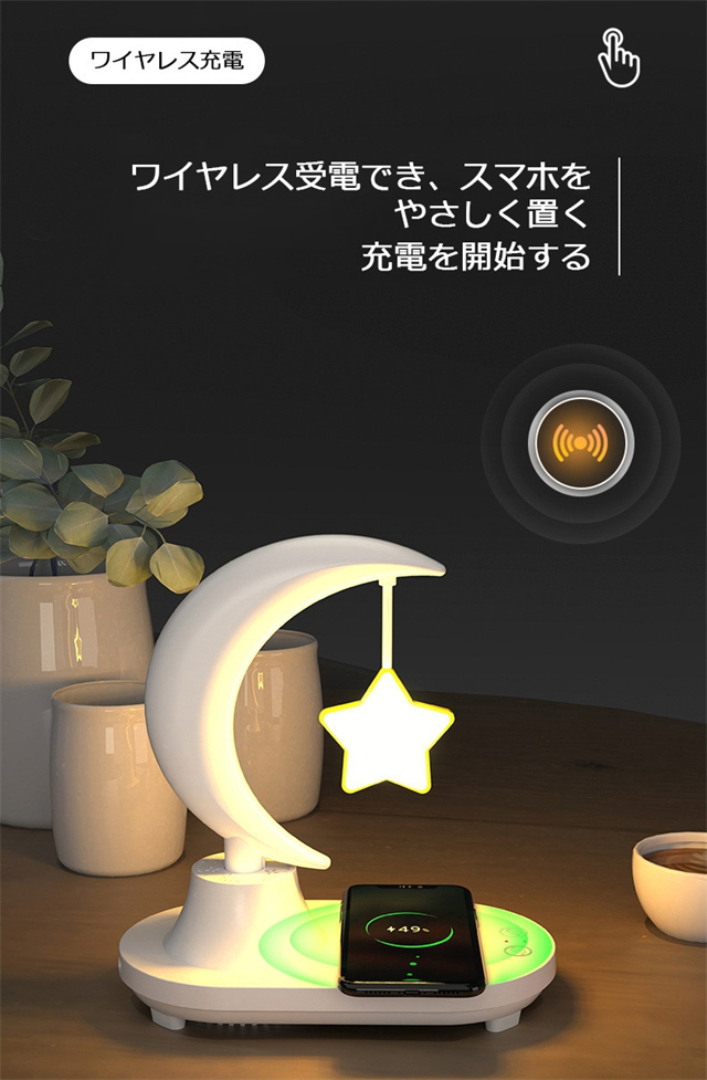 デスクライト 卓上ライト ライト スマート調光 スピーカー bluetooth 無線充電器 ワイヤレス充電 置くだけ 充電 間接照明 ブルートゥース ワイヤレス 星型 スター トリ インテリア ベッドサイド おしゃれ 大音量