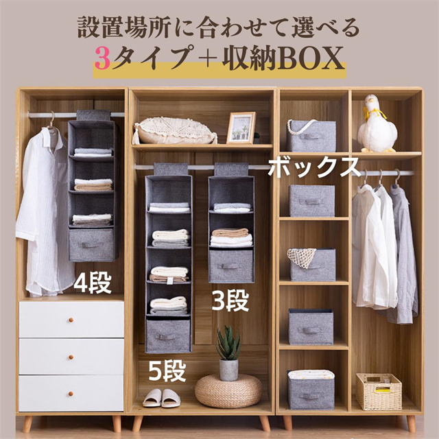 吊り下げ収納 クローゼット 3段 4段 5段 引き出し ボックス 吊り下げ 収納ケース バッグ収納 省スペース 収納 洋服 タオル 大容量 BOX つり下げ収納 吊り下げ棚 衣類 折りたたみ収納 折りたたみ 通気性