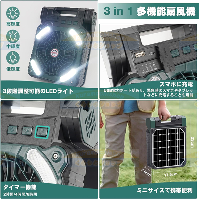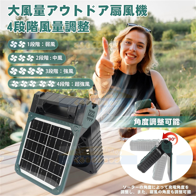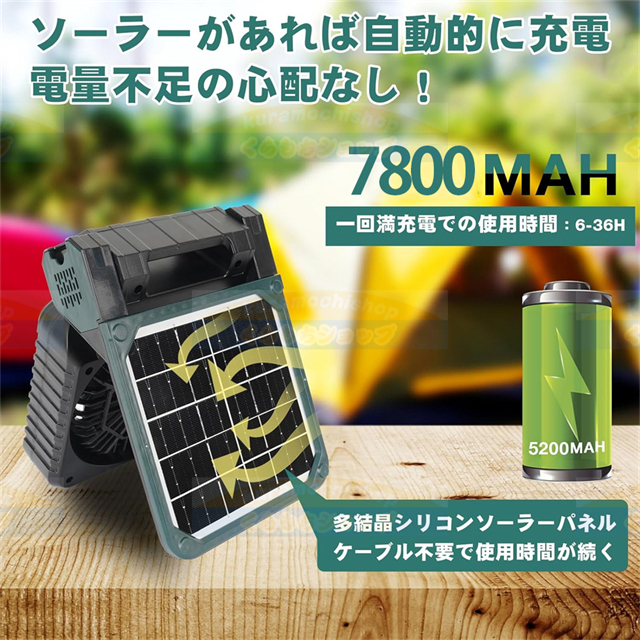 キャンプ 扇風機 ソーラー扇風機 ランタン充電式 ランタン 防災7800mAh 大容量 ソーラーパネルType-C充電式 アウトドア 扇風機風量4段階調節LED輝度3段階調節充電式扇風機 モバイルバッテリー機能 車中泊 扇風機 防災 ライト アウトドアキャンプ用品/応急 防災 停電用