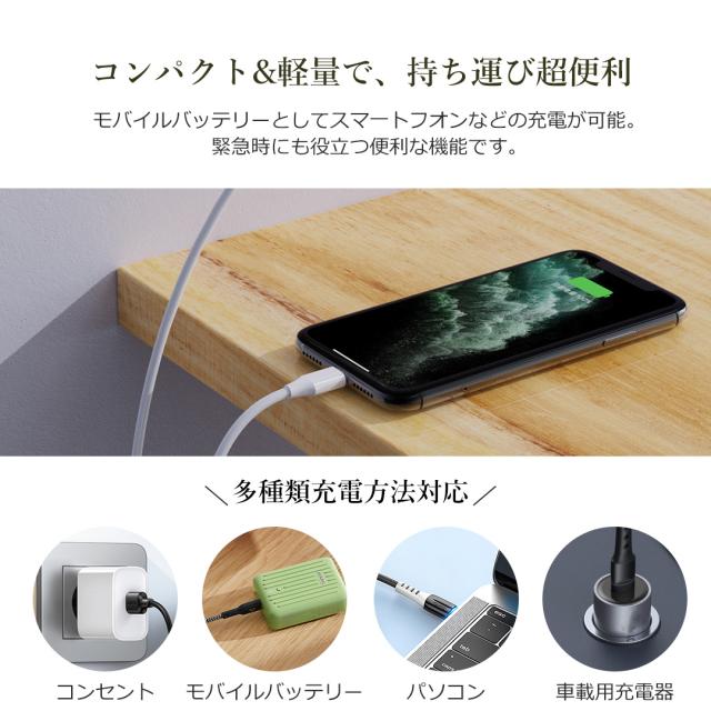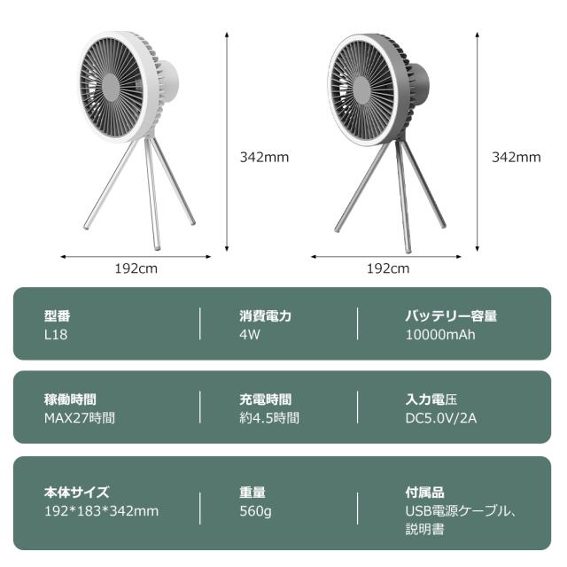 - 本扇風機は10000mAh大容量バッテリー搭載で、1回充電で最大27時間連続使用可能です。外出や停電時でも安心使えます。スマホの電池残量が少なくなった場合、扇風機をモバイルバッテリーとして活用することができ、大変便利です。