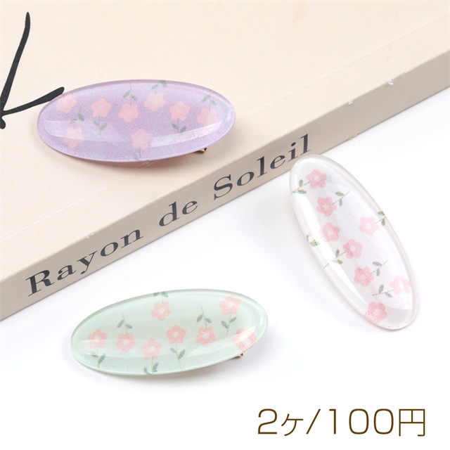 ヘアクリップ 鉄製/アクリル製 オーバル フラワー 花 髪飾り 髪留め ヘアピン 約1.7×4cm(2ヶ)