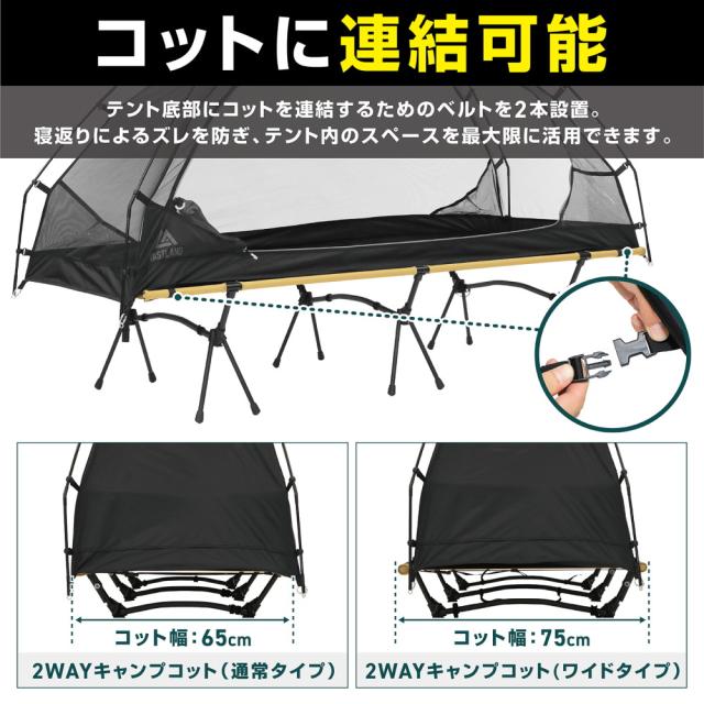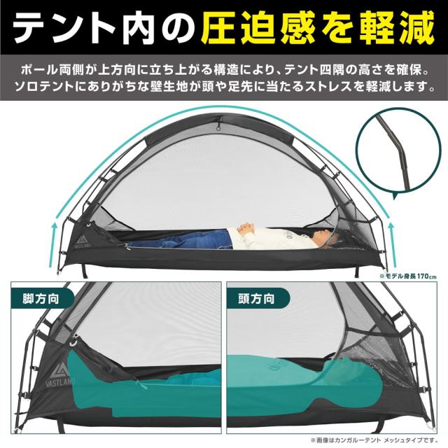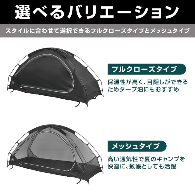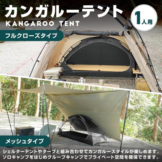 カンガルーテント インナーテント 一人用 ソロテント 簡単設営 コット連結ベルト フルクローズタイプ メッシュタイプ